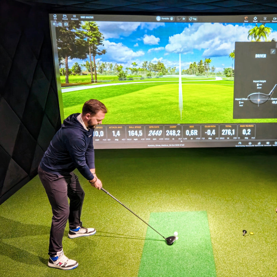 Die Leinwand des Golfsimulators ist ein Schlüsselelement des gesamten Systems – sie ist nicht nur für die Bildqualität, sondern auch für die Sicherheit, den Spielkomfort und die Langlebigkeit der Anlage verantwortlich. Bei der Planung von Golfsimulatoren wählen wir die Leinwand stets passend zum Aufstellungsort aus und berücksichtigen dabei dessen Geometrie und die Bedürfnisse der Nutzer. Ergänzt wird sie durch eine geeignete Stoßdämpfungsmatte zum Schutz der Handgelenke, eine optimale Beleuchtung und einen Projektor, der einen zuverlässigen Betrieb sowohl im privaten als auch im gewerblichen Bereich gewährleistet. Jedem Projekt geht ein Vorbereitungsschritt voraus, der die Erstellung eines Architekturentwurfs und eines Kostenvoranschlags umfasst.